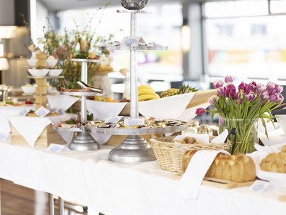 The menu includes hot dishes such as bacon, scrambled eggs and rösti, as well as nine types of bread, Prosecco, juices and Nespresso à discrétion. This is followed by a dessert buffet with pistachio panna cotta, burnt crème, exotic fruit salad and cakes.