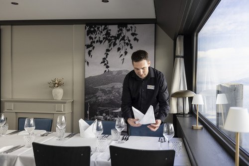 What he loves is the variety. "The contact with guests, the responsibility, the variety - from daily cruises to banquets." His favourite part is the sunset cruise: "The beautiful sunset, the golden glitter of the water over a cosy meal."