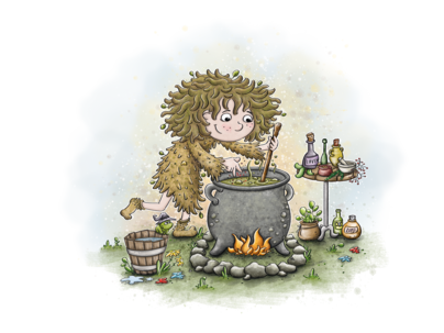 Vielleicht fragst du mal den Kapitän, der, der mit seinem Schiff auf meine Insel gefahren ist. Der weiss ganz bestimmt, welches mein Lieblingszauber ist. Hihihi … Natürlich ist das der Nebelzauber. Was denn sonst. Das ist so lustig, wenn die Menschen auf ihren Booten so verdattert gucken, weil sie vor lauter Nebel nicht mehr wissen, wo hinten und vorne ist. Und meine Superkräfte. Tja, da gibt es gaaanz viele. Ich kann also ganz supi zaubern und hexen und meinen Freunden einen Streich spielen. Und ich bin eine super Zuhöhrerin, wenn die Frösche ihr Abendlied quaxsen. Aber klar, das ist nicht so richtig eine Superkraft. Ach ja, ich kann mich extrem gut verstecken, mit meinen wilden, grünen Haaren. Und kochen kann ich auch toll. Ich backe auch. Zum Beispiel Krötenschleimmuffins, Vogeleierpralinen oder ein kräftiges Seealgenbrot. Das riecht soooo lecker.