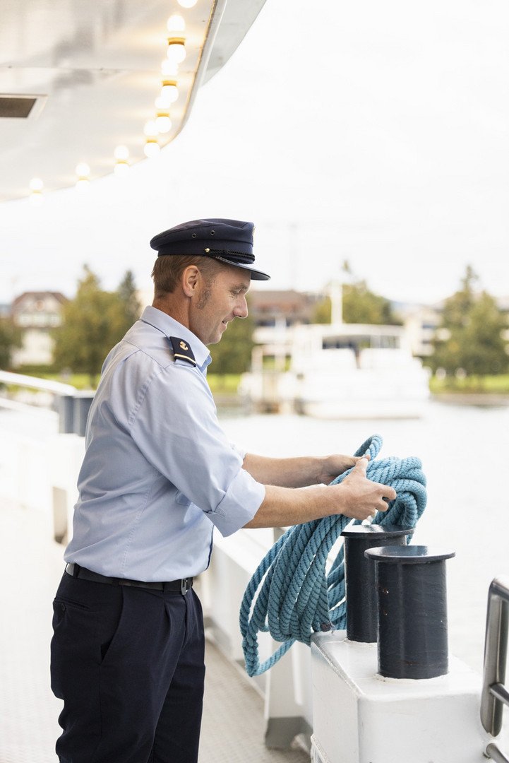 Andy ist erst seit April dabei. Der Zuger Buschauffeur wurde von Kollegen «angeworben». Vom Strassenverkehr aufs Wasser – das war für ihn ein bewusster Schritt. «Die Arbeit auf dem See ist ein echter Kontrast zum Bus: Teamarbeit, Abwechslung, direkter Kontakt mit Menschen. Das gefällt mir sehr.»